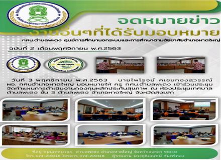 14.2.64 นายไพโรจน์ คเชนทองสุวรรณ์ มอบให้ ครู กศน.ตำบลพะตง ดำเนินการจัดกิจกรรมอบรมเสริมสร้างความรู้การใช้เทคโนโลยีดิจิทัลเเละการใช้สื่อออนไลน์ ณ กศน.ตำบลพะตง