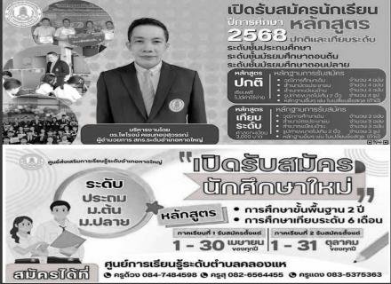 รับสมัครนักศึกษา ภาคเรียนที่ 2 ปีการศึกษา 2568