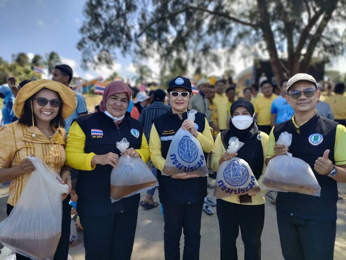 วันที่ 10 กุมภาพันธ์ 2566 เวลา 13.30 น. -15.30 น. นายวิเชียร โชติช่วง ผู้อำนวยการ กศน.อำเภอจะนะ มอบหมายให้บุคลากรครู กศน.ตำบลสะกอม (อำเภอจะนะ) เข้าร่วมโครงการพัฒนาตามศักยภาพของพื้นที่กิจกรรมการปล่อยพันธุ์สัตว์น้ำเพื่อเสริมสร้างความเข้มแข็งของเศรษฐกิจฐานราก โดยกรมประมง ในการนี้ได้มีนางสาวปริณดา ปาลาเร่ รองนายก อบจ. สงขลา ประธานโครงการ พร้อมด้วยหน่วยงานในพื้นที่และชาวบ้านตำบลสะกอม กิจกรรมดังกล่าวดำเนินการ ณ บริเวณชายหาด หมู่ที่ 7 บ้านบ่อโชน ตำบลสะกอม อำเภอจะนะ จังหวัดสงขลา