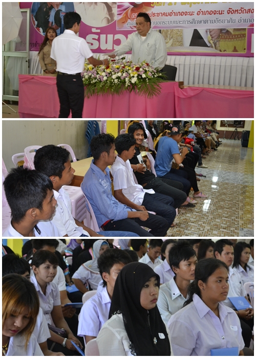 วันที่ 22 พฤษภาคม 2556 ศูนย์ กศน.อำเภอจะนะ จังหวัดสงขลา โดย ผอ. รุ่งเรือง จอมศรี มีนโยบายมอบรางวัล 3 รางวัล ๆ ละ 1,000 บาท ให้กับนักศึกษาที่มีผลคะแนนสอบ N-Net สูงสุด ได้แก่ 1. นายสน สาบก ระดับประถมศึกษา กศน. ตำบลนาทับ 2.นายไพฑูรย์ วิเศษอักษร ระดับมัธยมศึกษาตอนต้น กศน. ตำบลนาทับ 3.นายวิศรุต พรหมอินทร์ ระดับมัธยมศึกษาตอนปลาย กศน. ตำบลน้ำขาว โดยมี นายณรงค์พร ณ พัทลุง นายอำเภอจะนะ ให้เกียรติเป็นประธาน ในพิธีมอบรางวัล
