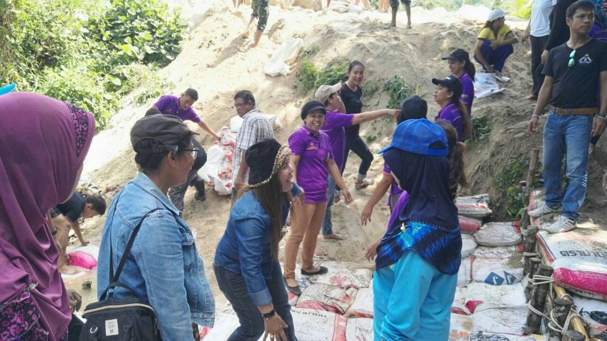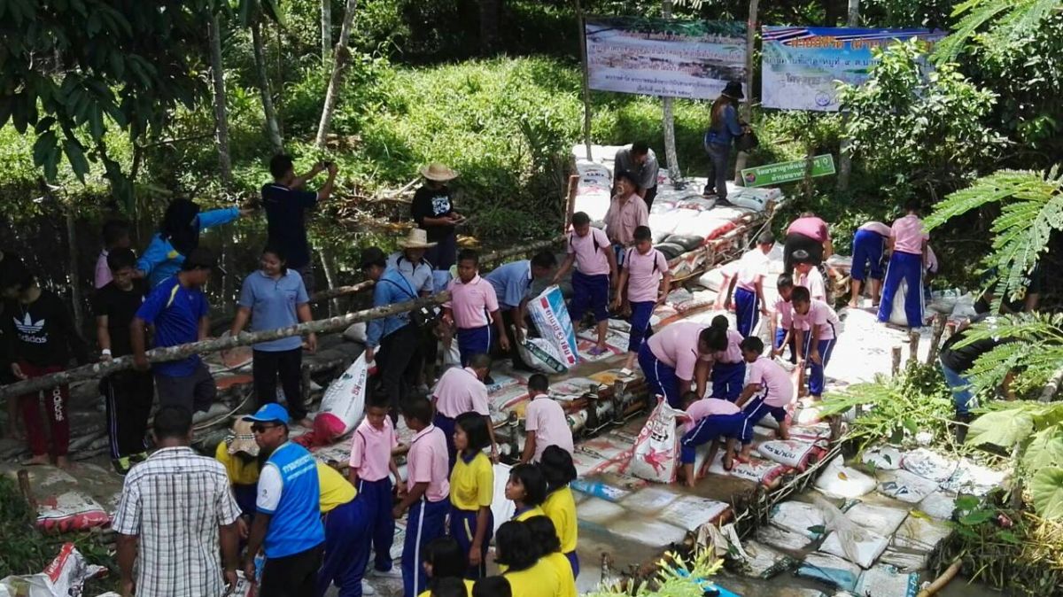นางรุ่งเรือง จอมศรี ผอ.กศน.อำเภอจะนะ ครูปริญญา ศรีสุก ครูจิรวรรณ ศรีสุก และนักศึกษา กศน.อำเภอจะนะ และ ประชาชน ร่วมกิจกรรมฝายมีชีวิต