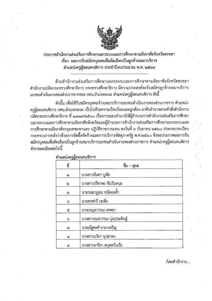 ประกาศสำนักงานส่งเสริมการศึกษานอกระบบและการศึกษาตามอัธยาศัยจังหวัดสงขลา