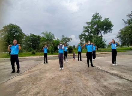 บุคลากร กศน.อำเภอคลองหอยโข่ง ร่วมออกกำลังกาย (เต้นแอโรบิค) เนื่องในวันสปอร์ต เดย์ จังหวัดสงขลา