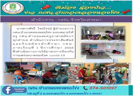 กศน.อำเภคลองหอยโข่ง ดำเนินการประชาสัมพันธ์และรับสมัครนักศึกษา กศน. ภาคเรียนที่ 1 ปีการศึกษา 2564