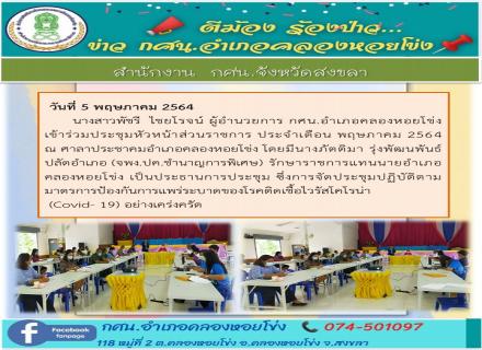 กศน.อำเภอคลองหอยโข่ง เข้าร่วมประชุมหัวหน้าส่วนราชการ ประจำเดือน พฤษภาคม 2564