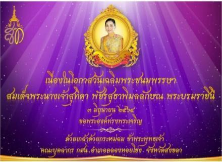 ห้องสมุดประชาชนอำเภอคลองหอยโข่ง ขอเชิญพสกนิกรชาวไทยร่วมลงนามถวายพระพรชัยมงคล เนื่องในโอกาสวันเฉลิมพระชนมพรรษา สมเด็จพระนางเจ้าสุทิดา พัชรสุธาพิมลลักษณ พระบรมราชินี ๓ มิถุนายน ๒๕๖๔