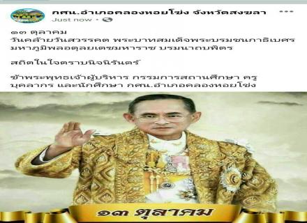 กศน.อำเภอคลองหอยโข่งและห้องสมุดประชาชนอำเภอคลองหอยโข่งขอเชิญชวนพสกนิกรชาวไทยร่วมน้อมรำลึกในพระมหากรุณาธิคุณ พระบาทสมเด็จพระจุลจอมเกล้าเจ้าอยู่หัว (รัชกาลที่ 5) เนื่องในโอกาสวันคล้ายวันสวรรคต ๒๓ ตุลาคม