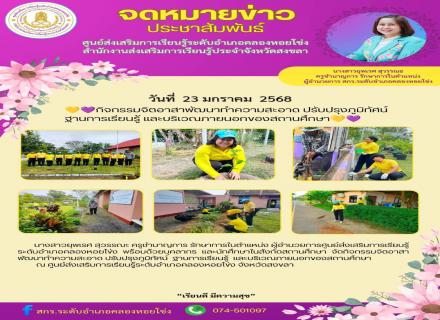 วันที่ 23 มกราคม 2568 นางสาวยุพเรศ สุวรรณะ ครูชำนาญการ รักษาการในตำแหน่ง ผู้อำนวยการศูนย์ส่งเสริมการเรียนรู้ระดับอำเภอคลองหอยโข่ง พร้อมด้วยบุคลากร และนักศึกษา ในสังกัดสถานศึกษา จัดกิจกรรมจิตอาสาพัฒนาทำความสะอาด ปรับปรุงภูมิทัศน์ฐานการเรียนรู้แล