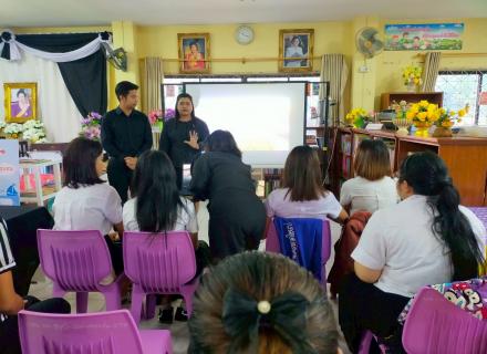 บุคลากร สกร.ระดับอำเภอควนเนียง ร่วมจัดกิจกรรม #รวมใจถวายความอาลัยผ่านริบบิ้น\" สอนการทำ ริบบิ้นดำ เครื่องหมายแสดงความอาลัย ให้กับนักเรียนโรงเรียนวัดบางทีง บุคลากรและคณะกรรมการโรงเรียน เพื่อถวายความอาลัยและน้อมรำลึกในพระมหากรุณาธิคุณ สมเด็จพระนางเจ้