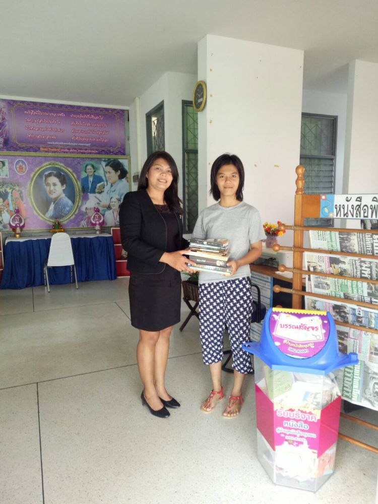 นางสาวตากาญจน์ มีนุ่น บรรณารักษ์ห้องสมุดประชาชนอำเภอคลองหอยโข่ง รับมอบหนังสือบริจาคจากผู้รับบริการห้องสมุดเพื่อหมุนเวียนหนังสือสู่บ้านหนังสือชุมชน