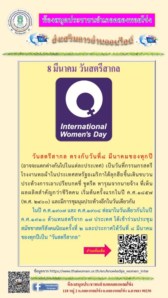 ห้องสมุดประชาชนอำเภอคลองหอยโข่ง เลขที่ ๑๑๘ ถนนโคกม่วง - บ้านเหนือ