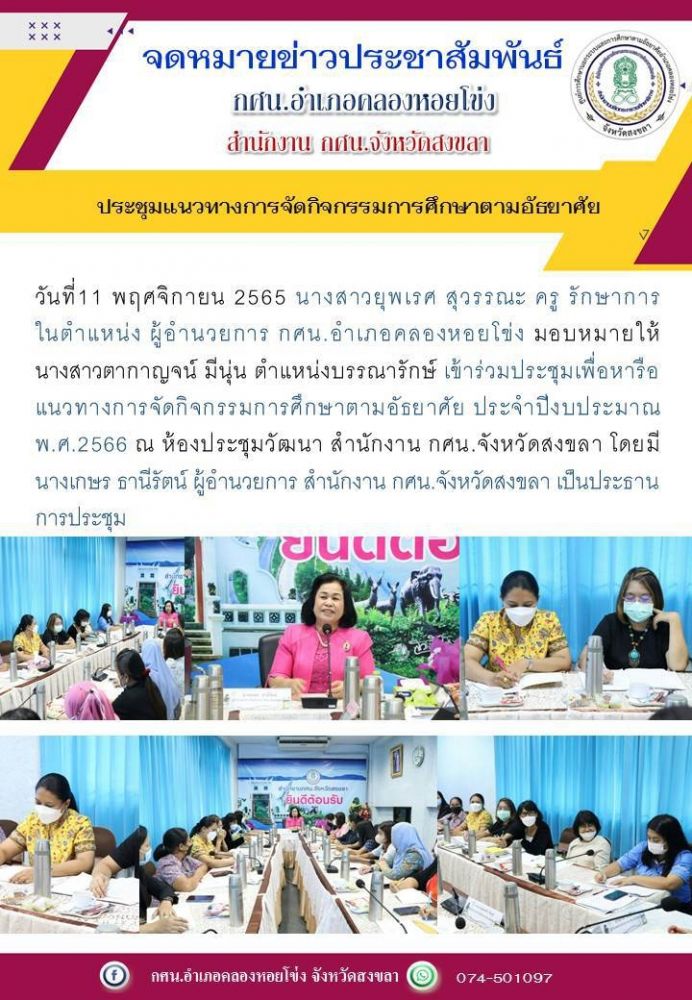 โดยมีนางเกษร ธานีรัตน์ ผู้อำนวยการ สำนักงาน กศน.จังหวัดสงขลา เป็นประธานการประชุม