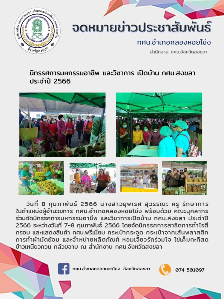 ร่วมจัดนิทรรศการมหกรรมอาชีพ และวิชาการเปิดบ้าน กศน.สงขลา ประจำปี 2566 ระหว่างวันที่ 7-8 กุมภาพันธ์ 2566