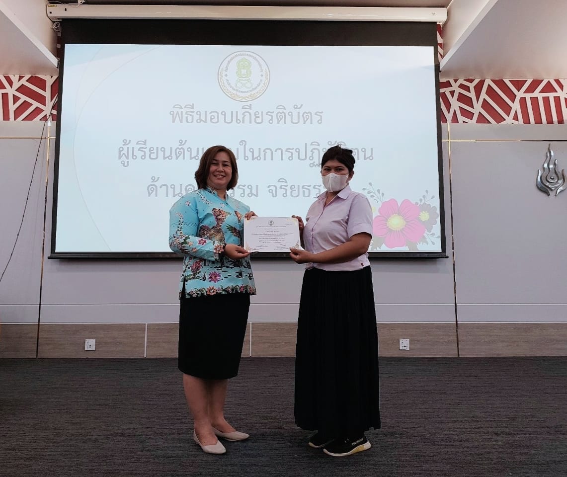 1.กิจกรรมมอบเกียรติบัตรให้กับผู้เรียนต้นแบบในการปฎิบัติตนด้านคุณธรรม จริยธรรม