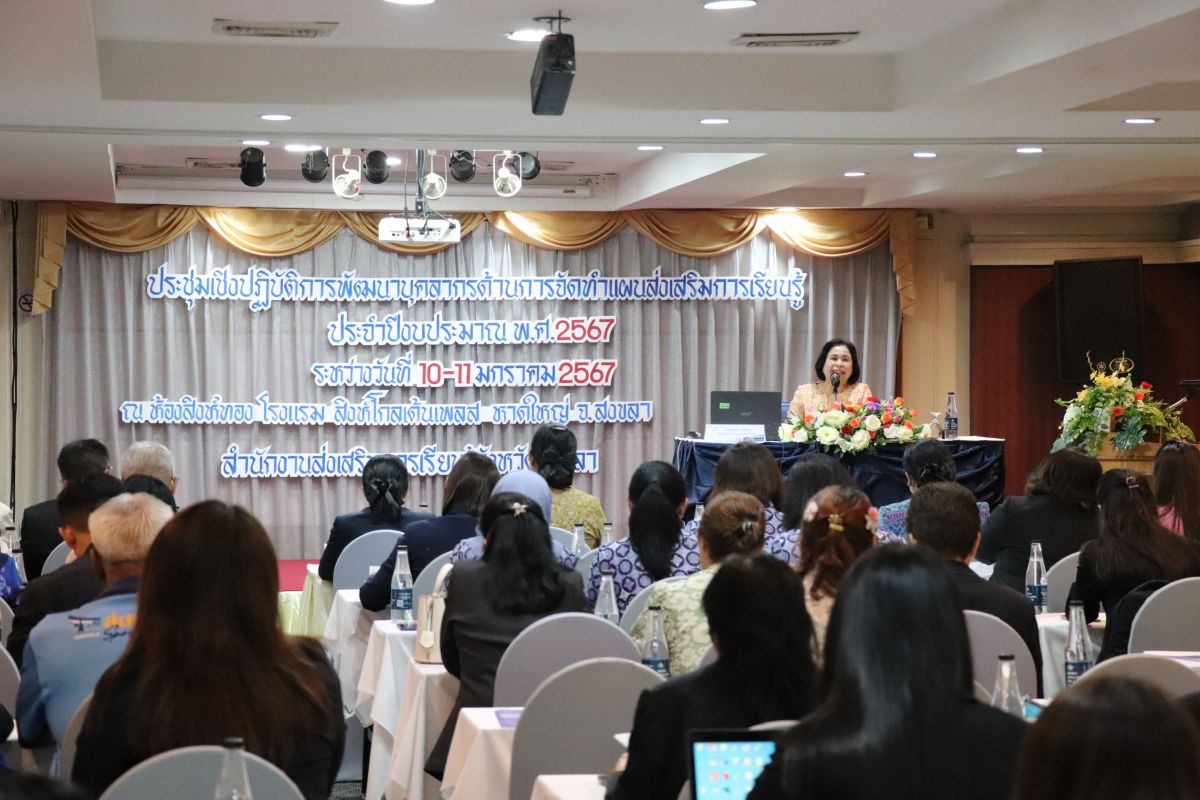 นางสาวยุพเรศ สุวรรณะ คร คศ.2 รักษาการในตำแหน่ง ผู้อำนวยการศูนย์ส่งเสริมการเรียนรู้อำเภอคลองหอยโข่ง พร้อมด้วย นางสาวณัฐกฤตา จอมศรี นางสาวอนุสรา ยาพระจันทร์ นางสาวตากาญจน์ มีนุ่น และนางสุภาภรณ์ จันวดี เข้าร่วมโครงการประชุมเชิงปฎิบัติการพัฒนาบุคลากรด้านการจัดทำแผนส่งเสริมการเรียนรู้จังหวัดสงขลา ประจำปีงบประมาณ พ.ศ.2567 ระหว่างวันที่ 10-11 มกราคม 2567 ณ โรงแรมสิงห์โกลเด้น เพลล์ อำเภอหาดใหญ่ จังหวัดสงขลา ซึ่งได้รับเกียรติจาก ดร.วัชรีวรรณ กันเดช รักษาการในตำแหน่งผู้เชี่ยวชาญเฉพาะ ด้านพัฒนาเครือข่าย กรมส่งเสริมการเรียนรู้ และนายยอดชาย ทองธีระ นักวิเคราะห์นโยบายและแผนชำนาญการพิเศษ กรมส่งเสริมการเรียนรู้ เป็นวิทยากร บรรยายให้ความรู้กระบวนการจัดทำแผน แนวทางการขับเคลื่อนการส่งเสริมการเรียนรู้ พระราชบัญญัติกรมส่งเสริมการเรียนรู้ นโยบายจุดเน้นกรมส่งเสริมการเรียนรู้ ปี 2567
