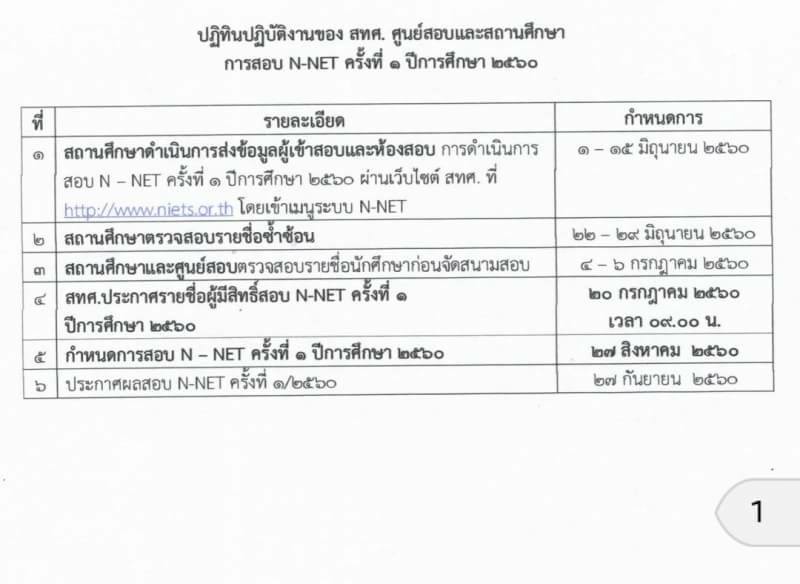 กำหนดการส่งข้อมูลนักศึกษาคาดว่าจะจบ ทุกระดับชั้น N-NET ๑/๒๕๖๐ และตารางสอบ N-NET ๑/๒๕๖๐