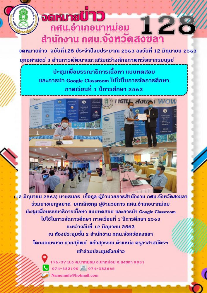 กศน.อำเภอนาหม่อม ร่วมประชุมเพื่อบรรณาธิการเนื้อหา แบบทดสอบ และการนำ Google Classroom ไปใช้ในการจัดการศึกษาภาคเรียนที่ 1 ปีการศึกษา 2563