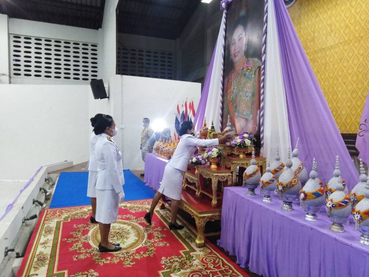 นางสุนิตย์ ไชยถาวร ผู้อำนวยการ กศน.อำเภอนาหม่อม ปฏิบัติหน้าที่ผู้อำนวยการ ศูนย์ส่งเสริมการเรียนรู้อำเภอนาหม่อม มอบหมายให้ครู และบุคลากร สกร.อำเภอนาหม่อม เข้าร่วมในพิธีถวายเครื่องราชสักการะและวางพานพุ่ม และพิธีจุดเทียนถวายพระพรชัยมงคล เนื่องในโอกาสวันเฉลิมพระชนมพรรษา สมเด็จพระนางเจ้าฯ พระบรมราชินี 3 มิถุนายน 2566 ณ หอประชุมอำเภอนาหม่อม จังหวัดสงขลา