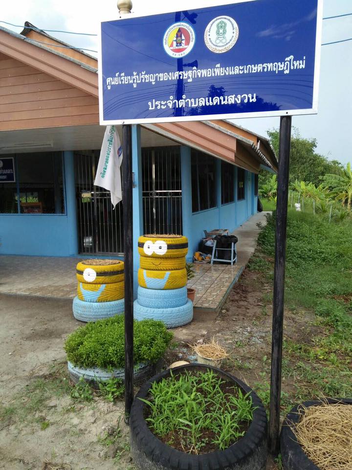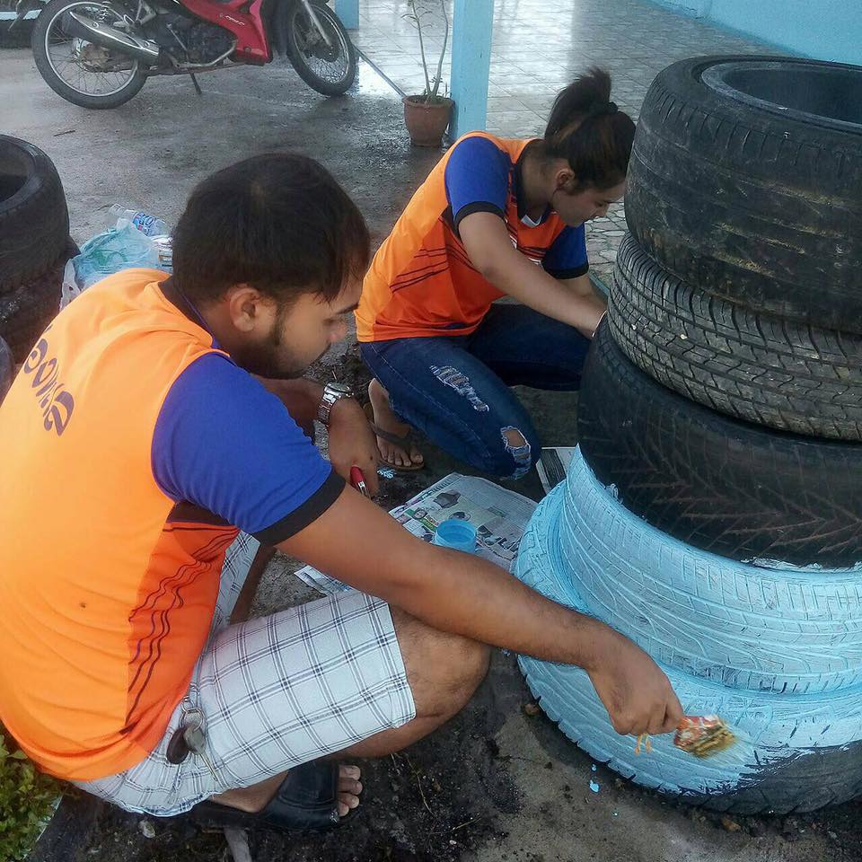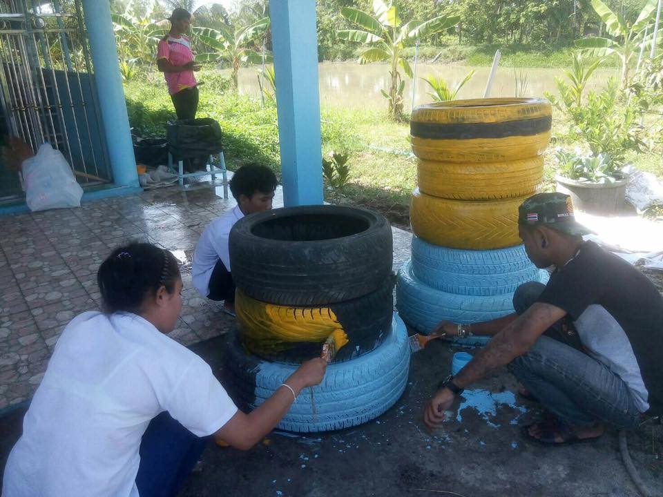 ดำเนินการจัดกิจกรรมพัฒนา กศน.ตำบลแดนสงวน โดยครูผู้สอนให้นักศึกษาร่วมกันตกแต่งล้อยางรถยนต์ต้นไม้