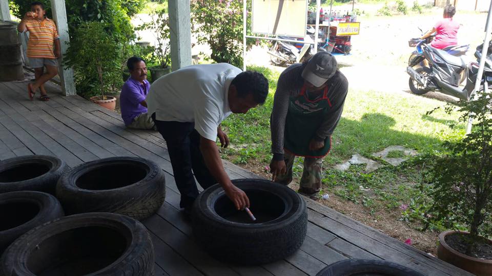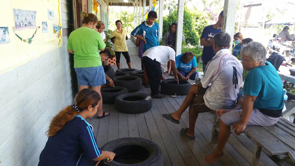 ดำเนินการเปิดโครงการฝึกอบรมการใช้เทคโนโลยีที่เหมาะสม เรื่อง การทำกระถางต้นไม้จากล้อยางรถยนต์