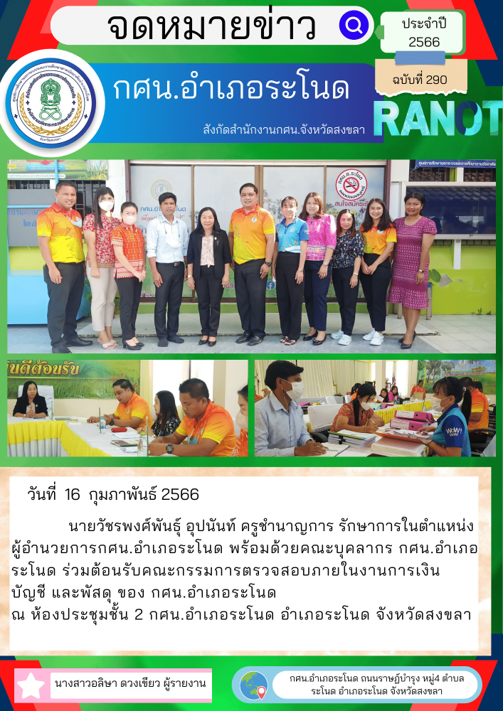 ร่วมต้อนรับคณะกรรมการตรวจสอบภายในงานการเงิน บัญชี และพัสดุ ของ กศน.อำเภอระโนด