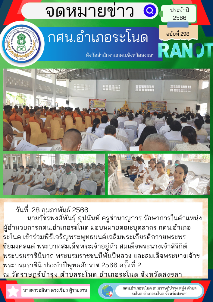 ยินดีต้อนรับเข้าสู่เว็บไซต์ ศูนย์ส่งเสริมการเรียนรู้ระดับอำเภอระโนด สำนักงานส่งเสริมการเรียนรู้ประจำจังหวัดสงขลา