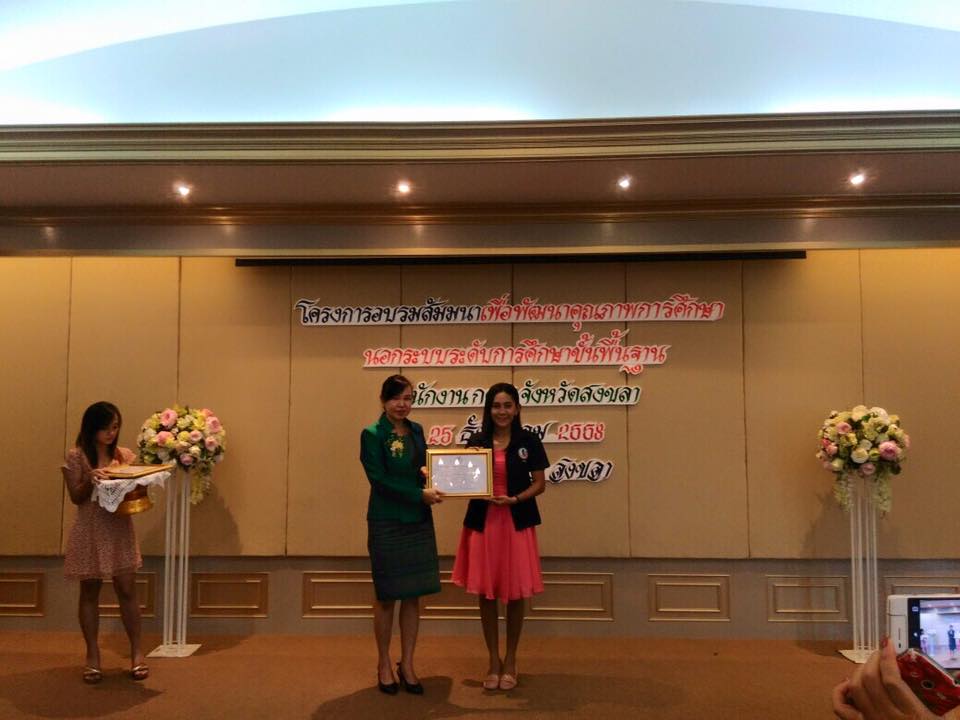โดย นางวรรญา ทิพย์ดนตรี ผู้อำนวยการสำนักงาน กศน.จังหวัดสงขลา เป็นมอบเกียรติบัตรแก