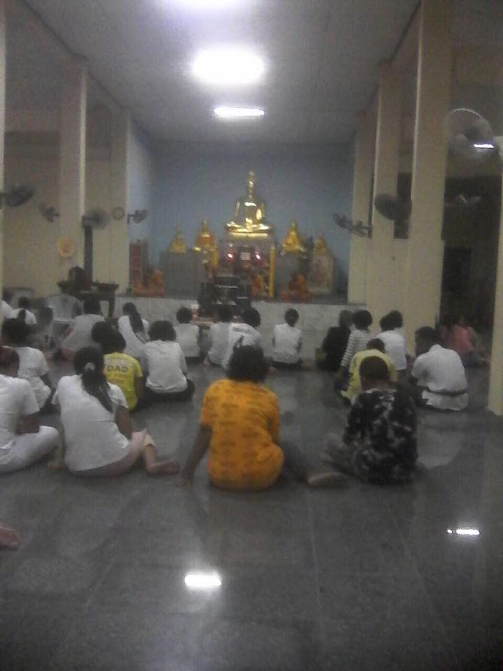 ได้มาร่วมกันนั่งสมาธิเพื่อให้เข้าถึงพระธรรมกายซึ่งเป็นกายแห่งการตรัสรู้ธรรม และนักศึกษาทุกคนควรจะหาโอกาสได้ไปจุดประทีป เดินเวียนประทักษิณรอบพุทธเจดีย์ที่ตนเคารพนับถือเพื่อน้อมถวายเป็นพุทธบูชา