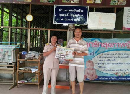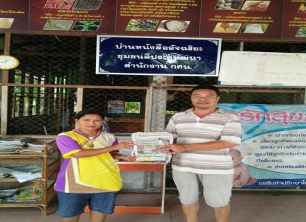 ผู้มีจิตศรัทธา มอบหนังสือพิมพ์ให้ผู้รับผิดชอบบ้านหนังสือชุมชนสีประดู่พัฒนา วันที่ 5 ตุลาคม 2558