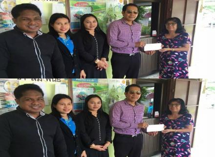นายไพโรจน์ คเชนทองสุวรรณ์ ผอ. กศน.อำเภอระโนด พร้อมคณะครู กศน.อำเภอระโนด ร่วมมอบเงินบริจาค ช่วยเหลือนักเรียนโรงเรียนระโนด ผู้ประสบภัยจากอัคคีภัย บ้านถูกไฟไหม้ วันที่ 9 ตุลาคม 2558 ณ โรงเรียนระโนด