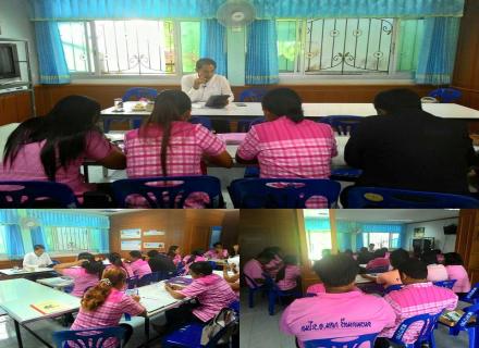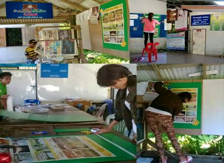 นางสาวละออ พรหมอ่อน ครู กศน.ตำบลบ่อตรุ มอบหมายให้ นักศึกษากศน.ตำบลบ่อตรุ ที่เรียนวิชาศาสนาและหน้าที่พลเมือง จัดนิทรรศการวันวิสาขบูชา วันที่ 1 มิถุนายน 2558