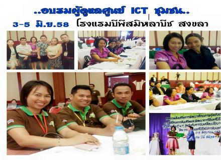 นายไพโรจน์ คเชนทองสุวรรณ์ ผอ. กศน.อำเภอระโนด มอบหมายให้ นางเพียงจันทร์ สันหนู ครู กศน.ตำบล บ้านขาว และนายพิชญานิน สรรญเสริญ ครู เข้ารับการอบรม ผู้ ดูแลศูนย์ ICT ชุมชน ณ โรงแรมบีพีสมิหลาบีช สงขลา วันที่ 3-5 มิถุนายน 2558