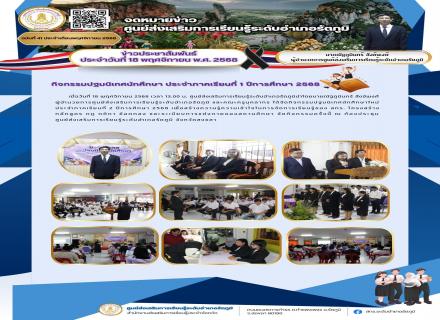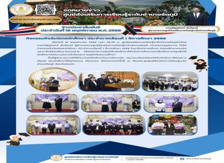 วันที่ 18 พฤศจิกายน 2568 เวลา 13.00 น. ศูนย์ส่งเสริมการเรียนรู้ระดับอำเภอรัตภูมินำโดยนายณัฐภูมินทร์ สังข์พงศ์ ผู้อำนวยการศูนย์ส่งเสริมการเรียนรู้ระดับอำเภอรัตภูมิ และคณะครูบุคลากร ได้จัดกิจกรรมปฐมนิเทศนักศึกษาใหม่ ประจำภาคเรียนที่ 2 ปีการศึกษา 2568 เพื่อส  เข้าชม :  [5]