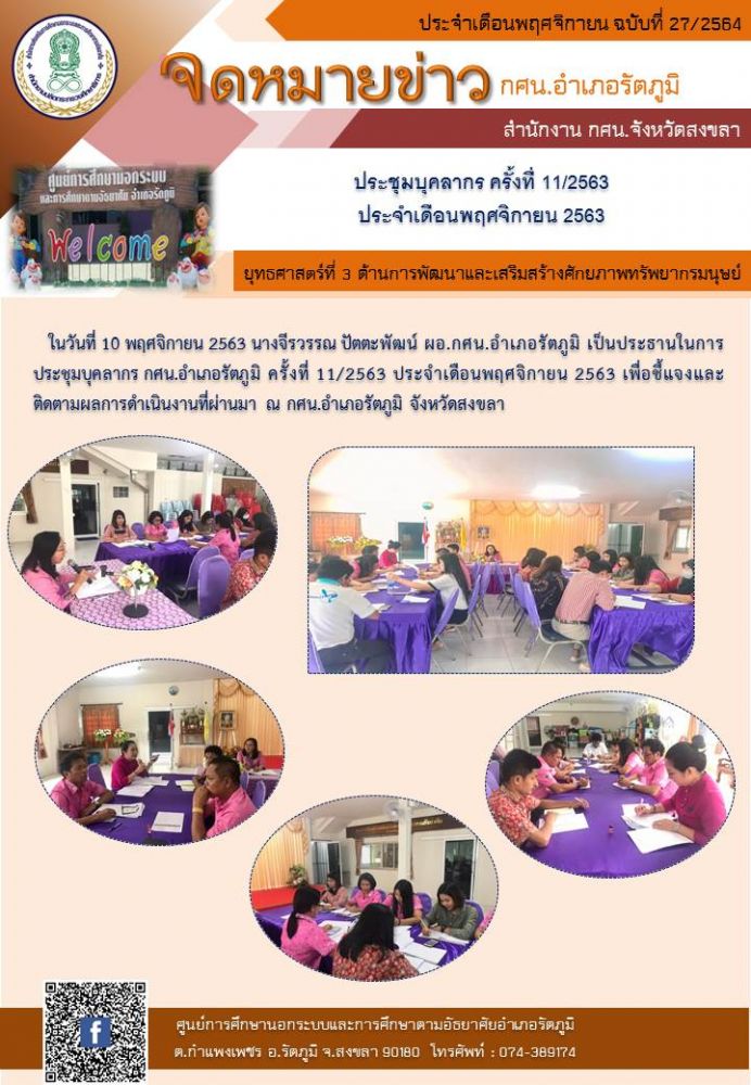 ประชุมบุคลากร ครั้งที่ 11/2563 ประจำเดือนพฤศจิกายน 2563