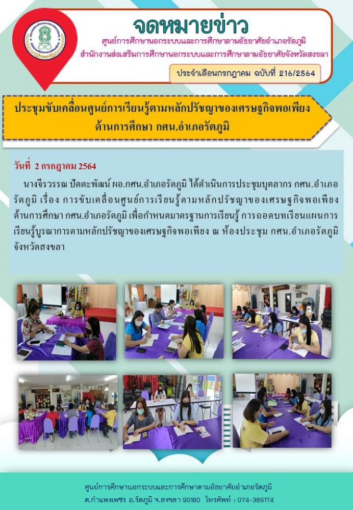 ประชุมขับเคลื่อนศูนย์การเรียนรู้ตามหลักปรัชญาของเศรษฐกิจพอเพียง ด้านการศึกษา กศน.อำเภอรัตภูมิ