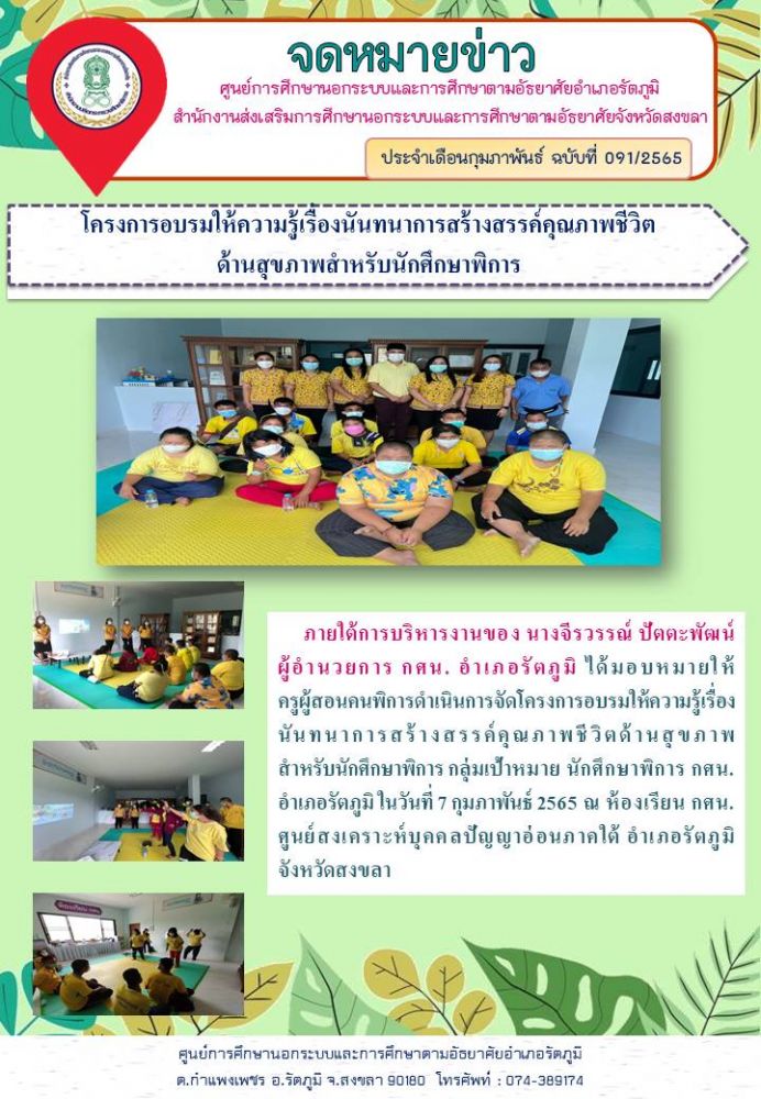 โครงการอบรมให้ความรู้เรื่องนันทนาการสร้างสรรค์คุณภาพชีวิตด้านสุขภาพสำหรับนักศึกษาพิการ