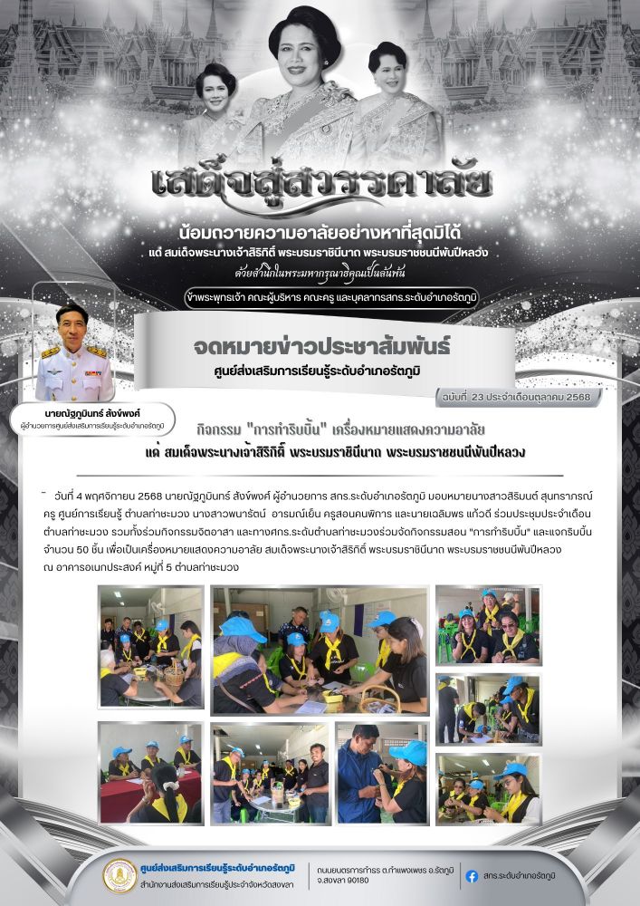 จำนวน 50 ชิ้น เพื่อเป็นเครื่องหมายแสดงความอาลัย สมเด็จพระนางเจ้าสิริกิติ์ พระบรมราชินีนาถ พระบรมราชชนนีพันปีหลวง ณ อาคารอเนกประสงค์ หมู่ที่ 5