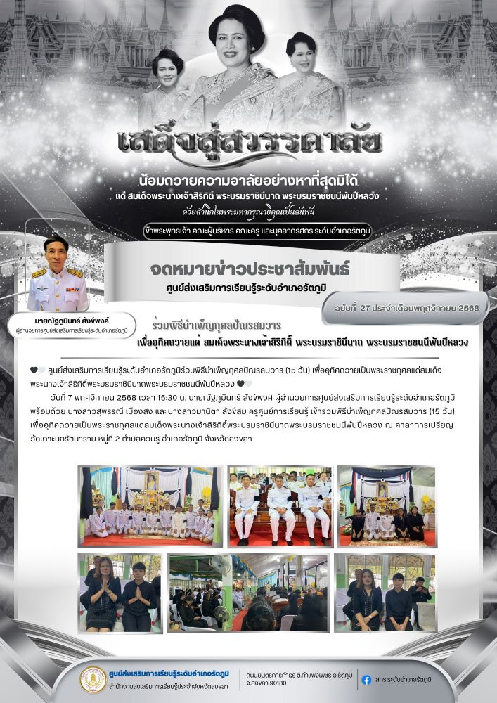 เข้าร่วมพิธีบำเพ็ญกุศลปัญรสมวาร 15 วัน เพื่ออุทิศถวายเป็นพระราชกุศล สมเด็จพระนางเจ้าสิริกิติ์ พระบรมราชินีนาถ พระบรมราชชนนีพันปีหลวง