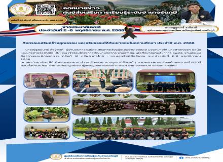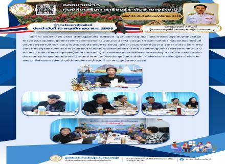 วันที่ 18 พฤศจิกายน 2568 เวลา 09.00 น. ศูนย์ส่งเสริมการเรียนรู้ระดับอำเภอรัตภูมินำโดยนายณัฐภูมินทร์ สังข์พงศ์ ผู้อำนวยการศูนย์ส่งเสริมการเรียนรู้ระดับอำเภอรัตภูมิ และคณะครูบุคลากร ได้จัดกิจกรรมปัจฉิมนิเทศนักศึกษา ประจำภาคเรียนที่ 1 ปีการศึกษา 2568 ในระดับ |