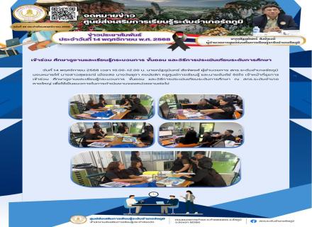 วันจันทร์ ที่ 10 พฤศจิกายน พ.ศ. 2568 เวลา 09.30-12.00 นายณัฐภูมินทร์ สังข์พงศ์ ผู้อำนวยการ ศูนย์ส่งเสริมการเรียนรู้ระดับอำเภอรัตภูมิ มอบหมายให้ นางถนอมพร อารมณ์เย็น ตำแหน่งครู คศ.2 และนางสาวสุรียืรัตน์ ณรินทร์ ตำแหน่งครู คศ.1 เป็นประธานในการดำเนินการประช |