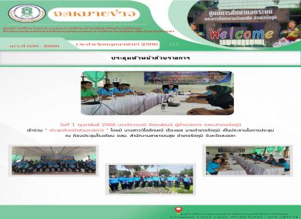 วันที่ 1 กุมภาพันธ์ 2566 นางจีรวรรณ์ ปัตตะพัฒน์ ผู้อำนวยการ กศน.อำเภอรัตภูมิ เข้าร่วม “ ประชุมหัวหน้าส่วนราชการ \" โดยมี นางสาววิไลลักษณ์ เรืองผล นายอำเภอรัตภูมิ เป็นประธานในการประชุม ณ ห้องประชุมโรงเรียน อสม. สำนักงานสาธารณสุข อำเภอรัตภูมิ จังหวัดสง