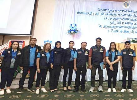 นายณัฐภูมินทร์ สังข์พงศ์ ผอ.สกร.ระดับอำเภอรัตภูมิ นางสาวสุพรรณี เมืองสง ครูศูนย์การเรียนรู้ตำบลควนรู นางสาวบุญญาพร กิติวิเชียร ครูผู้สอนคนพิการ