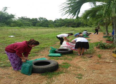 ครู สกร.ตำบลควนรู เข้าร่วมการพัฒนาหมู่บ้าน \"กิจกรมทางนี้มีผลผู้คนรักกัน(ปลูกตะไคร้ปลูกผัก)\"