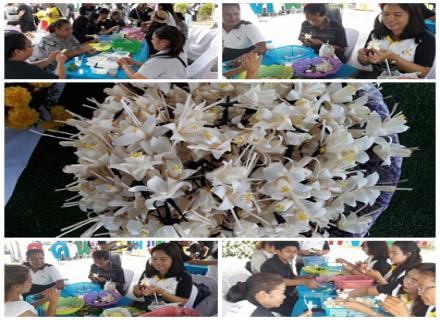 ในวันที่ 27 พฤษภาคม 2560 นางสาวอภิมุข ศรีสมัย ผู้อำนวยการ กศน.อำเภอรัตภูมิ มอบหมายให้บุคลากร กศน.ตำบลควนรู ร่วมดำเนินการจัดกิจกรรม การทำดอกไม้จันทน์ เพื่อใช้ในพระราชพิธีถวายพระเพลิงพระบรมศพ พระบาทสมเด็จพระปรมินทรมหาภูมิพลอดุลยเดช ณ วัดเกาะเบาะ ตำบลควนร