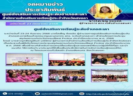 ศูนย์ส่งเสริมการเรียนรู้ระดับอำเภอสะเดา เข้าร่วมโครงการประชุม สรุปผลงานเด่น/นวัตกรรม/Best Prctice ประจำปีงบประมาณ พ.ศ. 2568