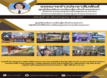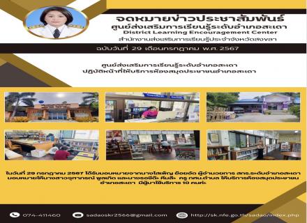 ศูนย์ส่งเสริมการเรียนรู้ระดับอำเภอสะเดา ปฏิบัติหน้าที่ให้บริการห้องสมุดประชาชนอำเภอสะเดา