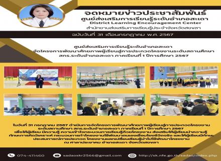 ในวันที่ 31 กรกฎาคม 2567 ดำเนินการจัดโครงการพัฒนาศักยภาพผู้เรียนสู่การประกวดโครงงาน ระดับสถานศึกษา สกร.ระดับอำเภอสะเดา ภาคเรียนที่ 1 ปีการศึกษา 2567 เพื่อให้ผู้เรียน มีความรู้ ความเข้าใจกระบวนการเรียนรู้ด้วยโครงงาน ส่งเสริมให้ผู้เรียนนำความรู้ ทักษะการค