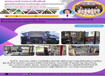 ศูนย์ส่งเสริมการเรียนรู้ระดับอำเภอสะเดา ปฏิบัติหน้าที่เจ้าหน้าที่ ห้องสมุดประชาชนอำเภอสะเดา