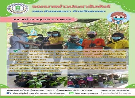 วันที่ 25 มิถุนายน พ.ศ. 2564 กศน.อำเภอสะเดา โดย นางโสเพ็ญ ย้อยอัด ผู้อำนวยการ กศน.อำเภอสะเดา ได้ดำเนินงาน กิจกรรมล้านเมล็ดพันธุ์สู้ภัยโควิด ตามนโยบายเร่งด่วน (Quick win) ของรัฐมนตรีว่าการกระทรวงศึกษาธิการ นางสาวตรีนุช เทียนทอง ทั้งนี้ กศน.ไ