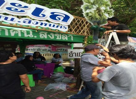 นางสุพันธ์ ทองแกมแก้ว ผอ กศน.อำเภอสิงหนคร และบุคลากร ร่วมจัดสถานที่ จัดเตรียมงาน \"วันรักการอ่าน\" ณ สำนักงาน กศน.จังวัดสงขลา
